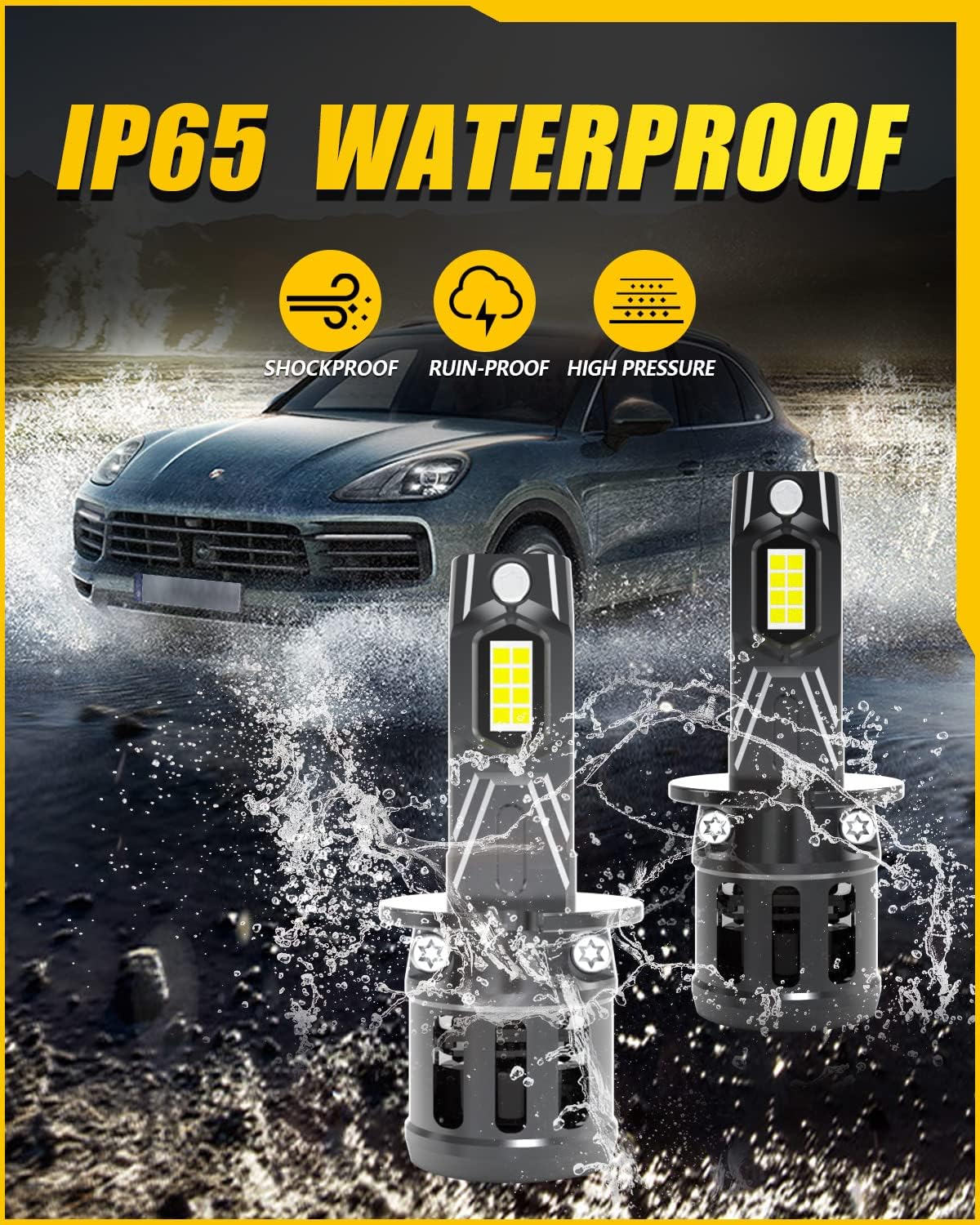 - ★【60,000 Hrs Long Lifespan】Whole 6063 aviation aluminum body, unique hollow carved heat sink design and high speed 16000rps turbo cooling fan providing super cooling ability, help to dissipate the heat generated from the H3 LED chips rapidly and effectively, which ensures a longer lifespan up to 60,000 hours. H3 bulb has excellent IP65 waterproof performance, daily use and safe driving can be secured in any vile weather.